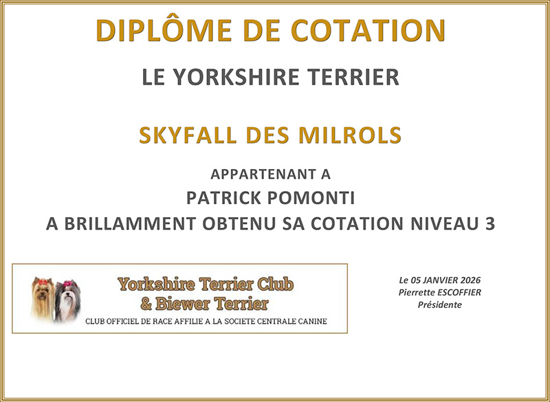 MULTI CHAMPION: SKY FALL DES MILROLS.